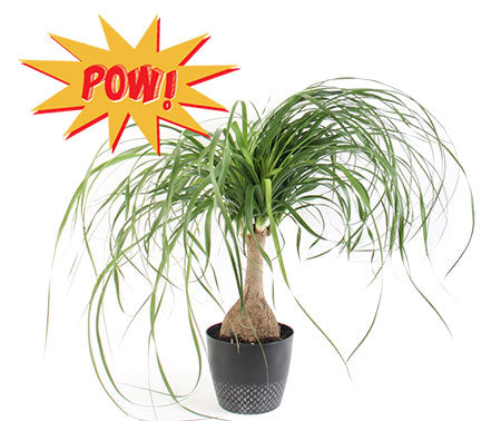 Ponytail palm is easy to grow and likes bright light but handles medium- and low-light spots. Virtually indestructible, ponytail palm stores water in its thick trunk so it can survive extended periods with no water. It’s the ideal plant if you travel a lot or are a forgetful waterer. For best growth, water ponytail palm when the top inch of the potting mix feels dry. Ponytail palm adds decorating POW! to contemporary, casual, or eclectic rooms. She’s a decorating diva on side tables, end tables, or coffee tables.