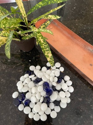-- Pebbles, seaglass, shells -- anything that will lay flat enough for pots to sit on