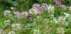 A snap to grow, cleome develops armloads of pink, white, or rose colored blooms from mid-summer to fall. Each bloom has long slender stamens that are said to resemble spiders, hence the plant's common name, spider flower. Cleome comes in standard and dwarf sizes. Standard cleome can grow 4 feet tall; dwarf varieties grow 2 feet tall and make great container plants. These easy-care flowers act like perennials in the southern part of their range, but throughout most of the country cleome is considered an annual. They look terrific planted en masse or mixed in the back of the border with other tall bloomers. Cleome is also highly attractive to butterflies and other pollinators. Hardy from zones 8-11.Cleome Questions?
