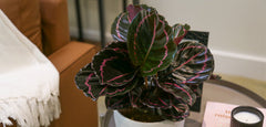 There are a lot of beautiful Calathea varieties available, and we love Dottie because of its dark, purple-green leaves and hot-pink variegation. This makes Dottie a stylish addition to practically any home or office and an elegant statement or accent plant in your houseplant collection.