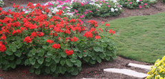 American gardeners have had a love affair with geraniums for decades. These colorful annuals are a cinch to grow and look just as good in the border as they do in pots, planters, and window boxes. But, geraniums have a big secret. They aren't really geraniums after all, but members of the pelargonium family. True geraniums are actually perennial in nature and are sometimes called cranesbill.Nomenclature aside, the plants we know and love as geraniums are truly wonderful plants that come in a variety of forms including: zonals, ivies, and interspecifics. All are available in a host of colors and bi-colors. Besides their flowers, zonal geraniums are prized for their pretty patterned foliage and upright form. Ivies make great basket plants because their trailing foliage and gorgeous blooms look terrific tumbling over the edge. And don't forget interspecific varieties. This relatively new type of geranium is a cross between zonal and ivy geraniums bearing the best qualities of both parents and never seem to go out of bloom. Geranium flowers are also highly prized by butterflies and hummingbirds. The plants are relatively deer resistant.