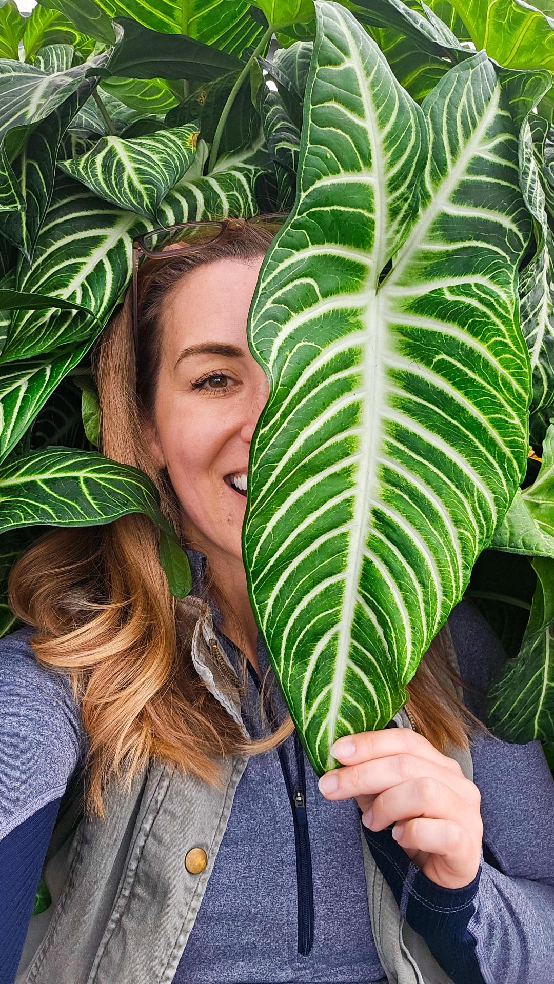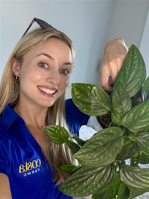 “I spent years hunting for Xanthosa and was so happy when Costa Farms started growing it,” says Michelle Opela, IPM manager. A stunning plant for both color and texture, its white leaf veins contrast the lush greenery of the leaves. Let it get bigger and the foliage takes on an even more tropical look.