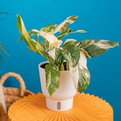 Like many other aroids (plants in the arum family, like Pothos and Philodendron), this vine can sensitive to overwatering. If you’re watering the traditional way, allow the top couple of inches of the potting mix to dry in between waterings. If you use the Wick & Grow self-watering system, water only by adding moisture to the reservoir and be sure you never overfill the reservoir.