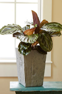 If you like jungle prints, flashy stripes and plaids, and 1960s psychedelic art, I have the plant for you: Calathea. This plant produces large leaves with bold splashy patterns that will thrill your heart and add instant interest to any room.