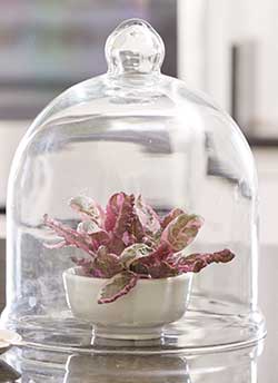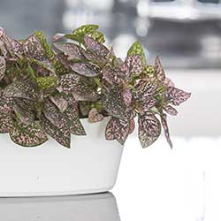Fittonia, also called nerve plant, features pink, red, or white leaves variegated with green. These little beauties don’t mind a low-light spot. They also appreciate regular watering and wilt quickly, and somewhat dramatically, when dry. Happily, they perk back up just as fast. If you're new to watering, fittonias might be a good fit for you because they're so communicative the way they droop and bounce back with water. There are a variety of pink-variegated varieties to watch for, including ‘Pink Angel’ and ‘Mini Pink’. One of my favorites is ‘Frankie’ because the leaves are almost metallic pink. Not sure how to display them? Here's a hint: Fittonias look great and love growing in terrariums.
