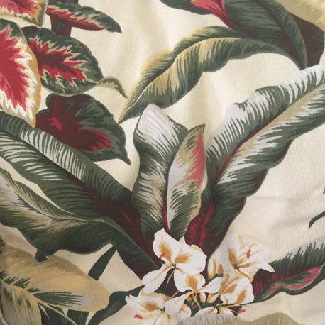 Bark cloth’s design motifs were inspired by many tropical plants you can grow in your home or garden. Leafy and flowering houseplants that inspired the distinctive style of vintage bark cloth include: